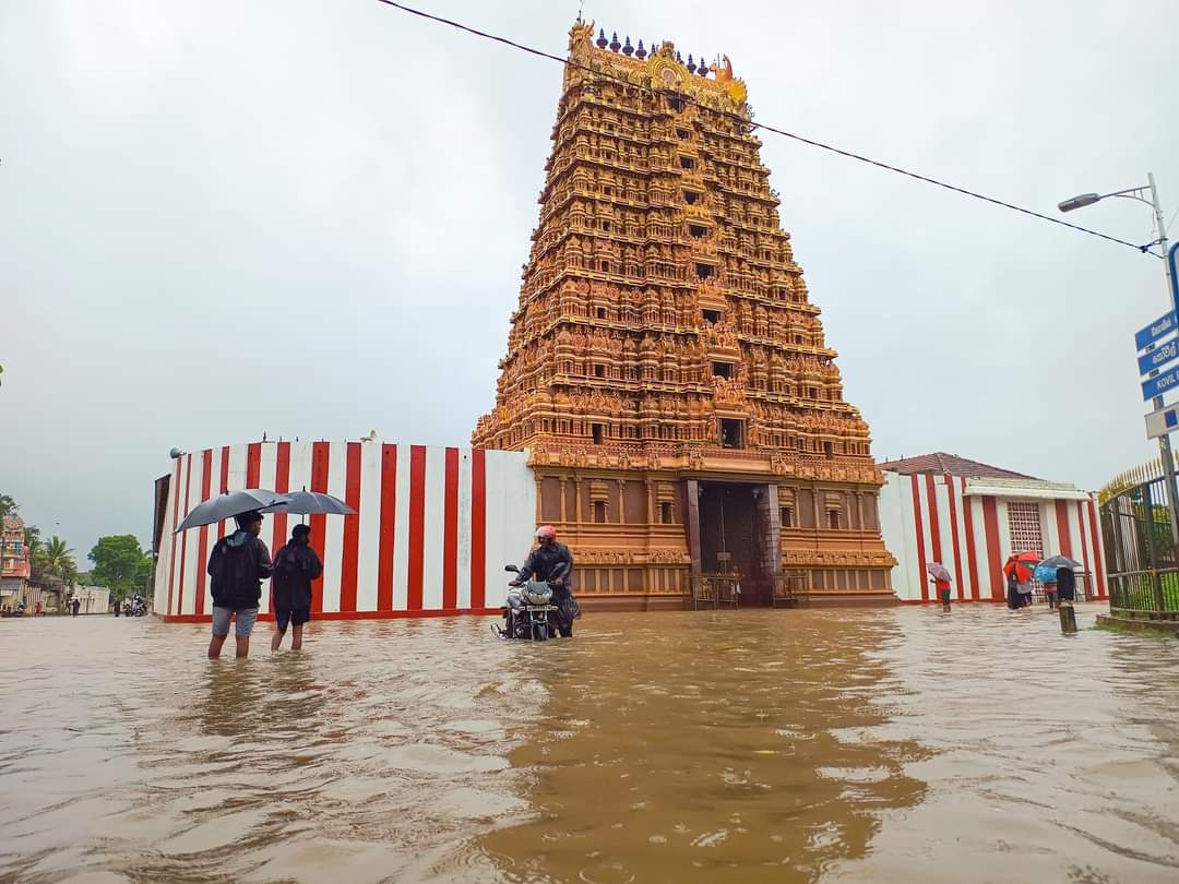 யாழ்ப்பாணத்தில் இருந்து சென்ற பேருந்து பாரிய வெள்ளத்தில் சிக்கியுள்ளது.