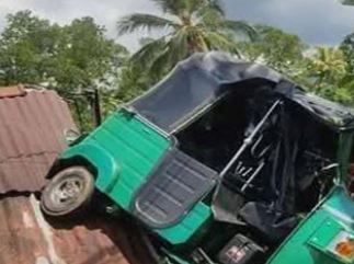 வீட்டின் கூரை மேல் முச்சக்கர வண்டி- இருவர் காயம்
