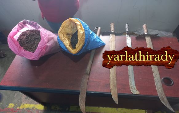 நேற்றையதினம் இளவாலை பொலிஸ் பிரிவிற்குட்பட்ட மாதகல் பகுதியில் கஞ்சா மற்றும் வாள்களுடன் மூவர் கைது செய்யப்பட்டுள்ளனர்.