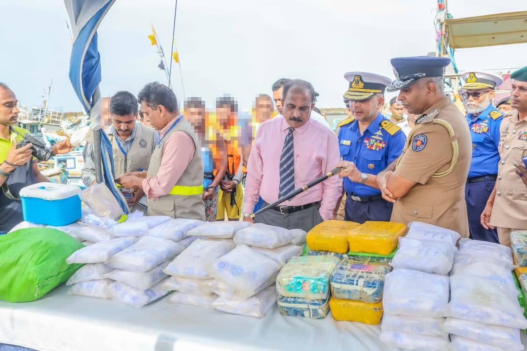 இலங்கை கடற்படையினரின் விசேட நடவடிக்கையின் போது ஐஸ் மற்றும் ஹெரோயின் போதைப்பொருட்கள் 600 கிலோ கிராம் மீட்கப்பட்டுள்ளதுடன், அவற்றினை கடத்தி சென்ற 02 மீன்பிடி படகுகளுடன் 11 பேர் கைது செய்யப்பட்டுள்ளனர்.