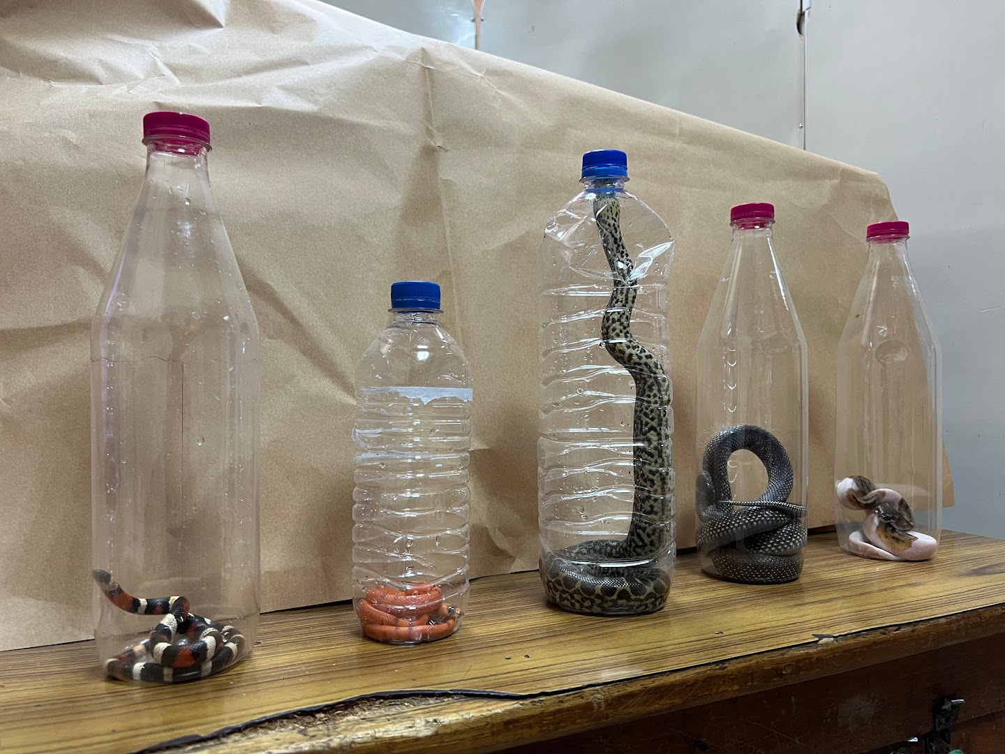 புள்ளிகள் கொண்ட ராஜ் நாகம்(1), மஞ்சள் அனகோண்டா(1), ஹோண்டுரான் பால் பாம்புகள்(3), உருளை மலைப்பாம்பு(1) என்பனவே இவ்வாறு கைப்பற்றப்பட்டுள்ளது.
