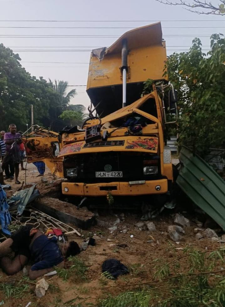 சாரதிக்கு ஏற்பட்ட நித்திரை கலக்கம் காரணமாக டிப்பர் வாகனம் மின்கம்பம் மற்றும் தொலைத்தொடர்பு கம்பம், சுவர் ஆகியவற்றுடன் மோதி விபத்துக்குள்ளானது.