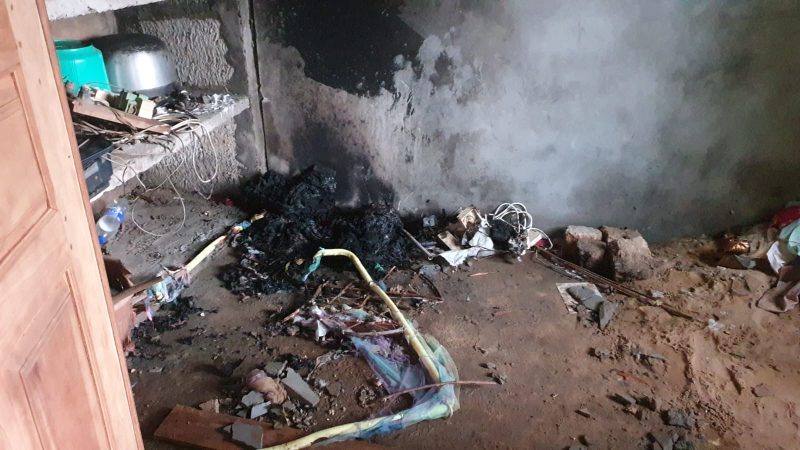 அதேவேளை குறித்த மின்னல் தாக்கத்தினால் அயலவர்களின் தொலைக்காட்சி பெட்டி உள்ளிட்ட இலத்திரனியல் பொருட்கள் சிலவும் சேதமடைந்துள்ளதாக கூறப்படுகிறது.
