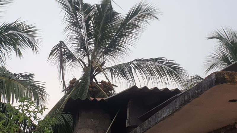 தென்னை மரம் மின்னல் தாக்கத்திற்கு உள்ளாகி எரிவதனை கண்ட அயலவர்கள் விரைந்து செயற்பட்டு தீயினை அணைத்துள்ளனர்
