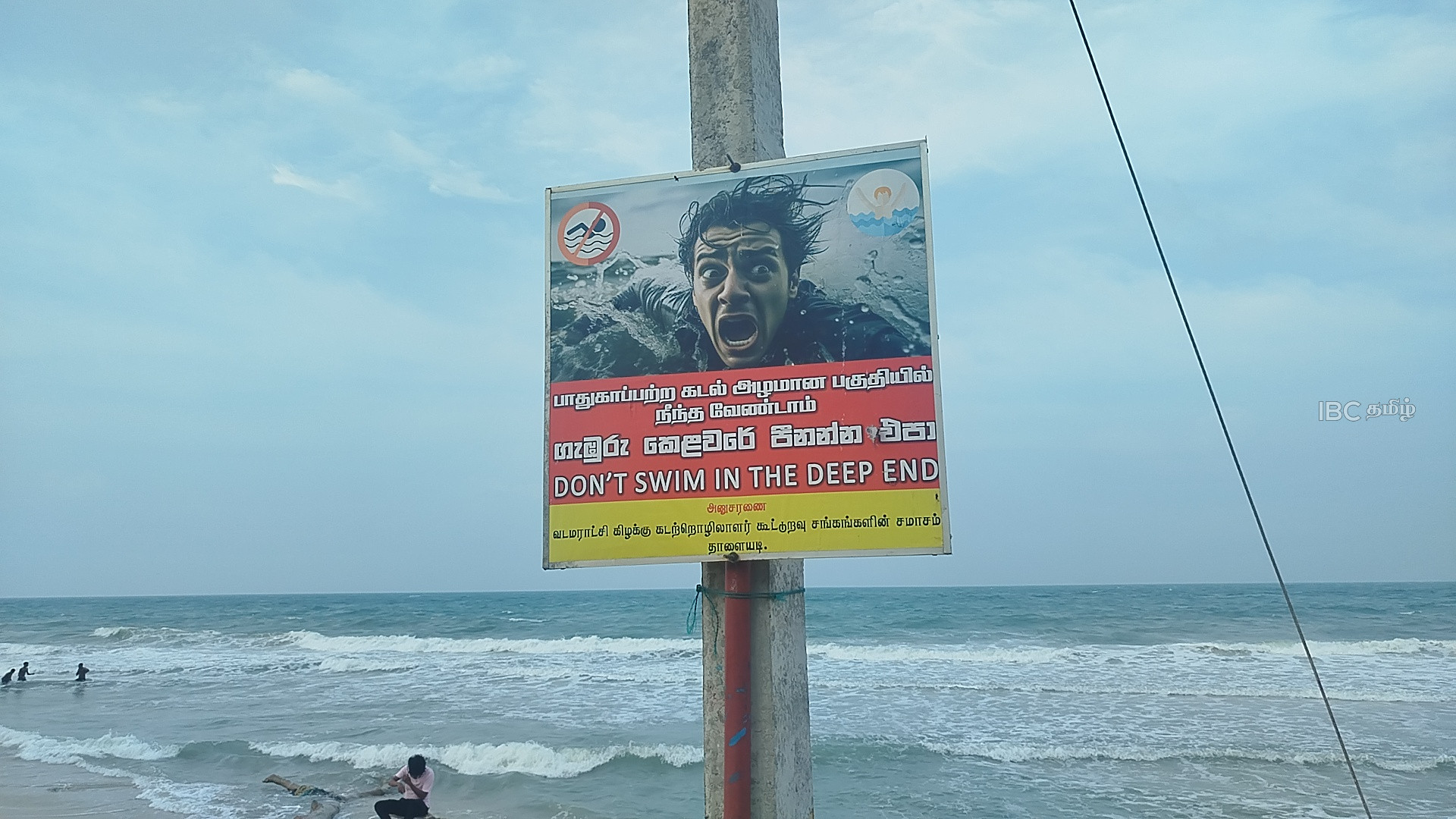 எச்சரிக்கையை மீறி தாளையடி கடலுக்குள் வெளிநாட்டு சுற்றுலாவாசிகள் இறங்குவதாக தெரிவிக்கப்படுகின்றது.