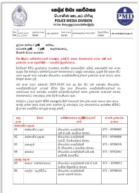 ஹெரோயின், கோகைன் மற்றும் ஐஸ், கஞ்சா உள்ளிட்ட போதைப்பொருள் தொடர்பான தகவல்களை பொதுமக்கள் இந்த எண்கள் மூலம் நேரடியாகப் முறைப்பாடு செய்யலாம் என அறிவிக்கப்பட்டுள்ளது.
