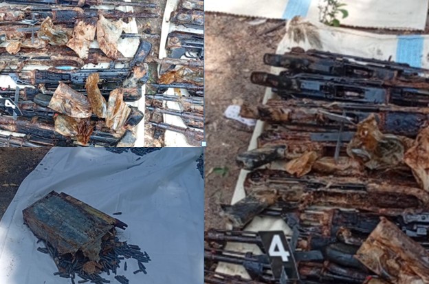ரி- 56ரக துப்பாக்கிகள் 30 மற்றும் அவற்றுக்குரிய 5 ஆயிரம் ரவைகள் மீட்கப்பட்டுள்ளன.