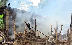 திருகோணமலை பாலத்தோப்பூர் பகுதியில் தீக்கிரையான வீடு