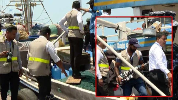 நாட்டின் தெற்கு கடற்பரப்பில், போதைப்பொருளுடன் கைப்பற்றப்பட்ட 2 மீன்பிடிப் படகுகளும் திக்கோவிட்ட மீன்பிடித் துறைமுகத்துக்கு கொண்டுவரப்பட்டுள்ளன.